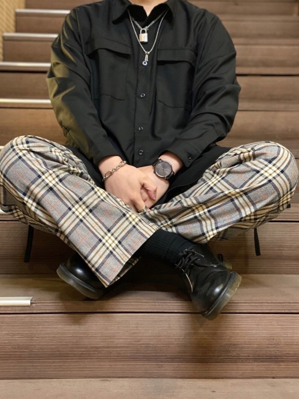 ご覧いただき、ありがとうございます😊 今回投稿するコーデは、 『黒シャツxチェックパンツ』コーデ✨ ぴたんさんのブランド『KUUUPY』の黒シャツとkutirのチェックパンツを組み合わせたコーデです👏 基本はブラックベースでコーデを組み合わせて、差し色としてチェックパンツを使用しました👌 この黒シャツはビックシルエットだし、ヨークも付いているので他の黒シャツと差別化できます😆 (男心が湧くデザインです😏最高!) 春•初夏•秋だと一番上に来てもおしゃれですし、冬はアウターやニット•ベストの下にレイヤードとして着用もできて非常に使いやすいアイテムです👍 本当に使いやすいアイテムですので、購入をおすすめしたいです☺︎ 夏物あんまり買ってないから買わないと〜🥺 欲しいアイテム沢山ある😋 この投稿が少しでもいいと思っていただけたら、いいね•お気に入り•フォローお願いいたします🙇♂️ 📱Instagram📱では別角度からの撮影や、短編動画も掲載していますので、是非覗きに来てください👀 →https://wear.jp/cookie2020/ くっきーで検索‼︎
