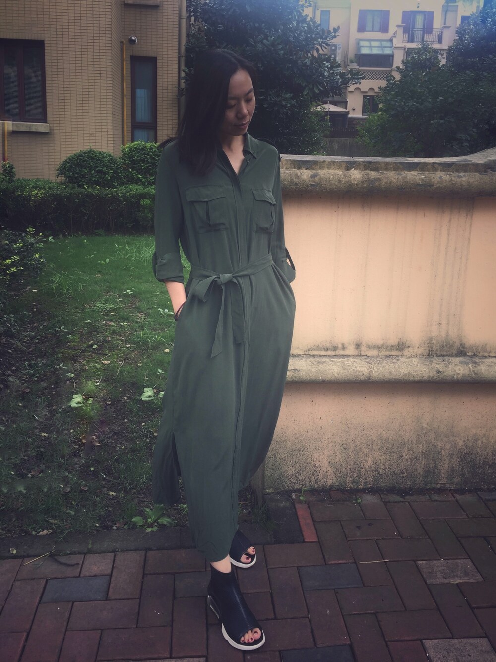 シャツワンピース (グリーン系)シャツワンピース