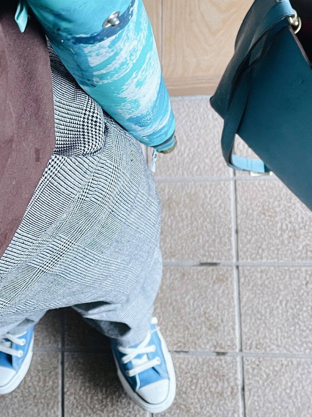 上は、ユニクロのノースリーブT すごい豪雨で服濡れてる.耳鼻科に行きました コシラエルの傘入れがお気に入り コシラエルが終わってしまうのが残念です