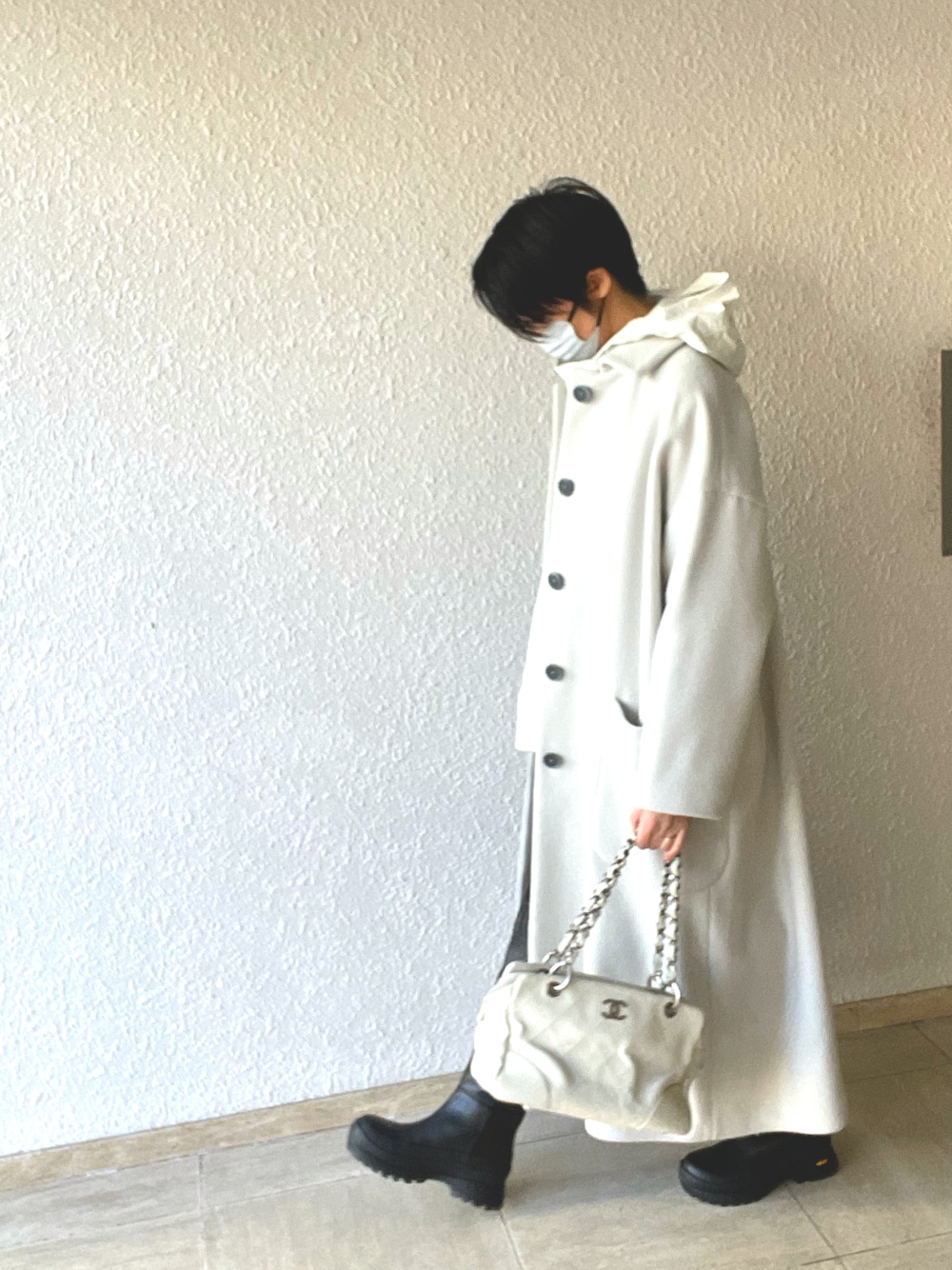 ロングコート とてもお気に入りです 実は色が 薄いなんとも言えないグレー系なのです でも オフホワイトでも 黒でも もちろんグレー系でも とても綺麗に合う何とも素敵な色合い🧥 ここまで長いロングコートは なかなか出会えなく 一枚着るだけで 本当に一気にオシャレになる 最高アイテムです お気に入り🧥 san