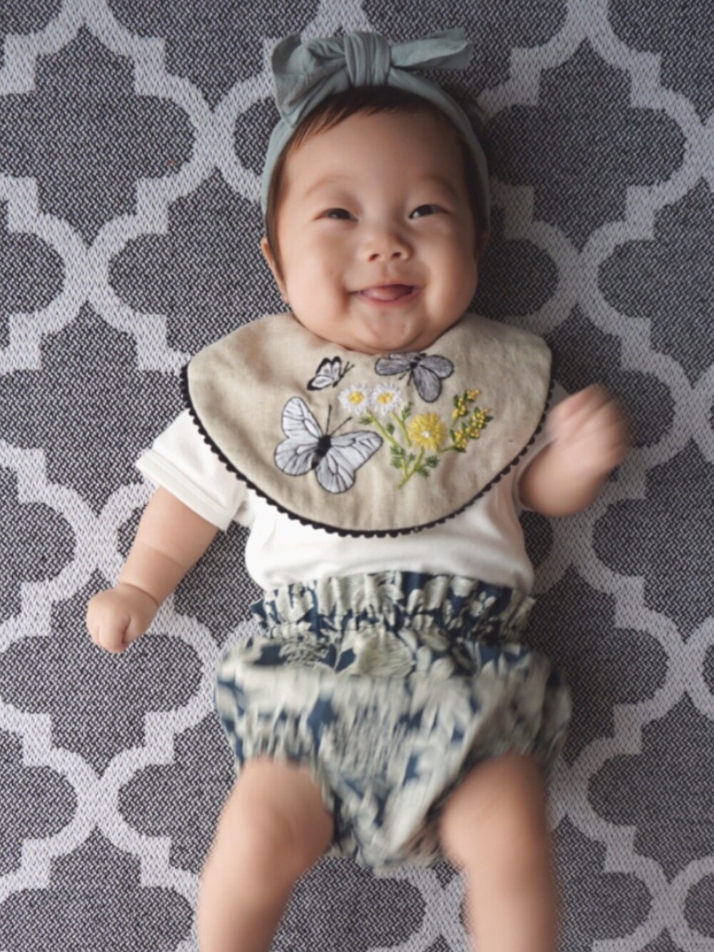 ハンドメイドコーデ𓇼⋆* 刺繍スタイが主役のコーデ 春生まれの娘に春モチーフの 刺繍をちくちく🌼🦋