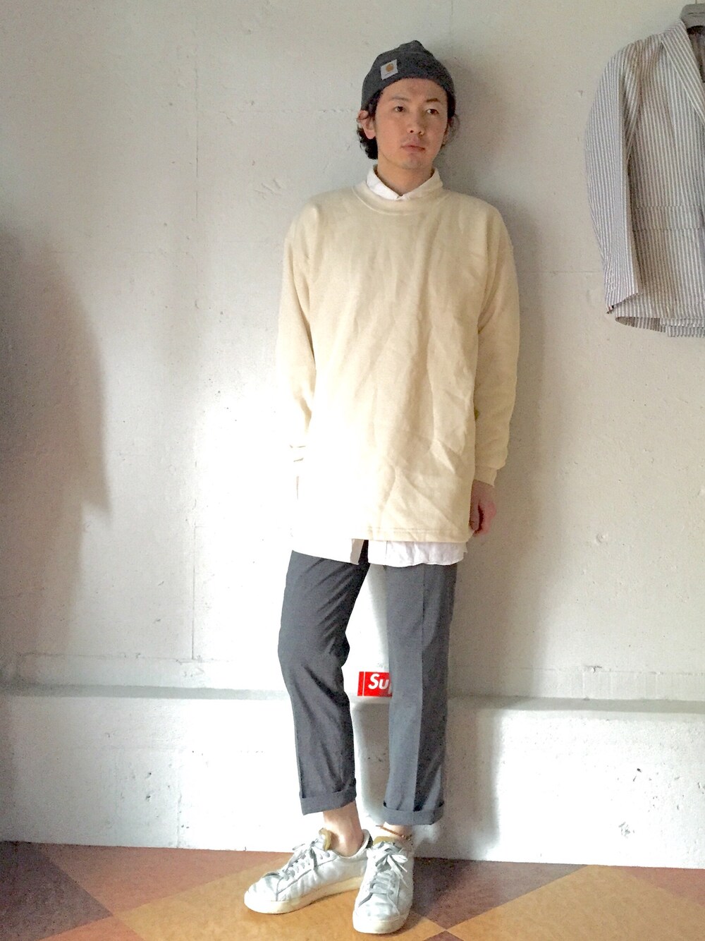 友達の古着屋さんで買ったPatagoniaのスウェットはPOPEYEで載せてたやつで暖かくなり始めた今にぴったり スラックスはUNIQLOで9部丈ぐらいで履くのが今の気分なので春らしいユルさが好きです