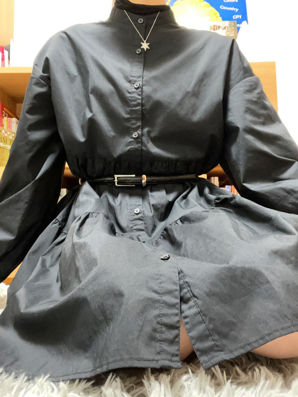 GUのシャツワンピの中にタートルネック着ればこの時期でも着れる❄️ これにショートブーツを履いたてロングコート着たら可愛かった🥾