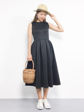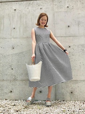 [無地/ボーダー柄]ノースリーブロング丈フィット&フレアワンピース レディース[E1816]神戸レタスを使ったコーディネート