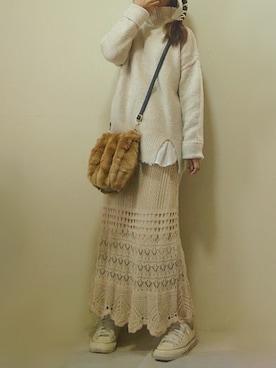 ウエストゴムシアーニットロングスカートを使ったコーディネート