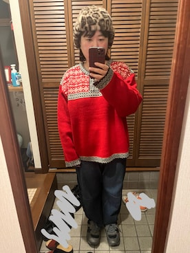 トライバルジャガードニットプルオーバーを使ったコーディネート