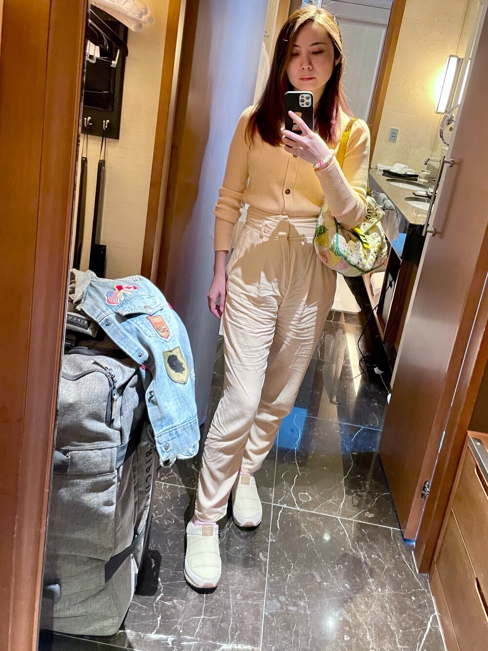 出張旅行2日目スタイル。 1日目は会食だったので、カッチリ、チャーチの革靴だったのだけど、2日目はしのばせてきたTEVAのスリッポン。本当に軽くて、スリッパにもなるし優秀。
