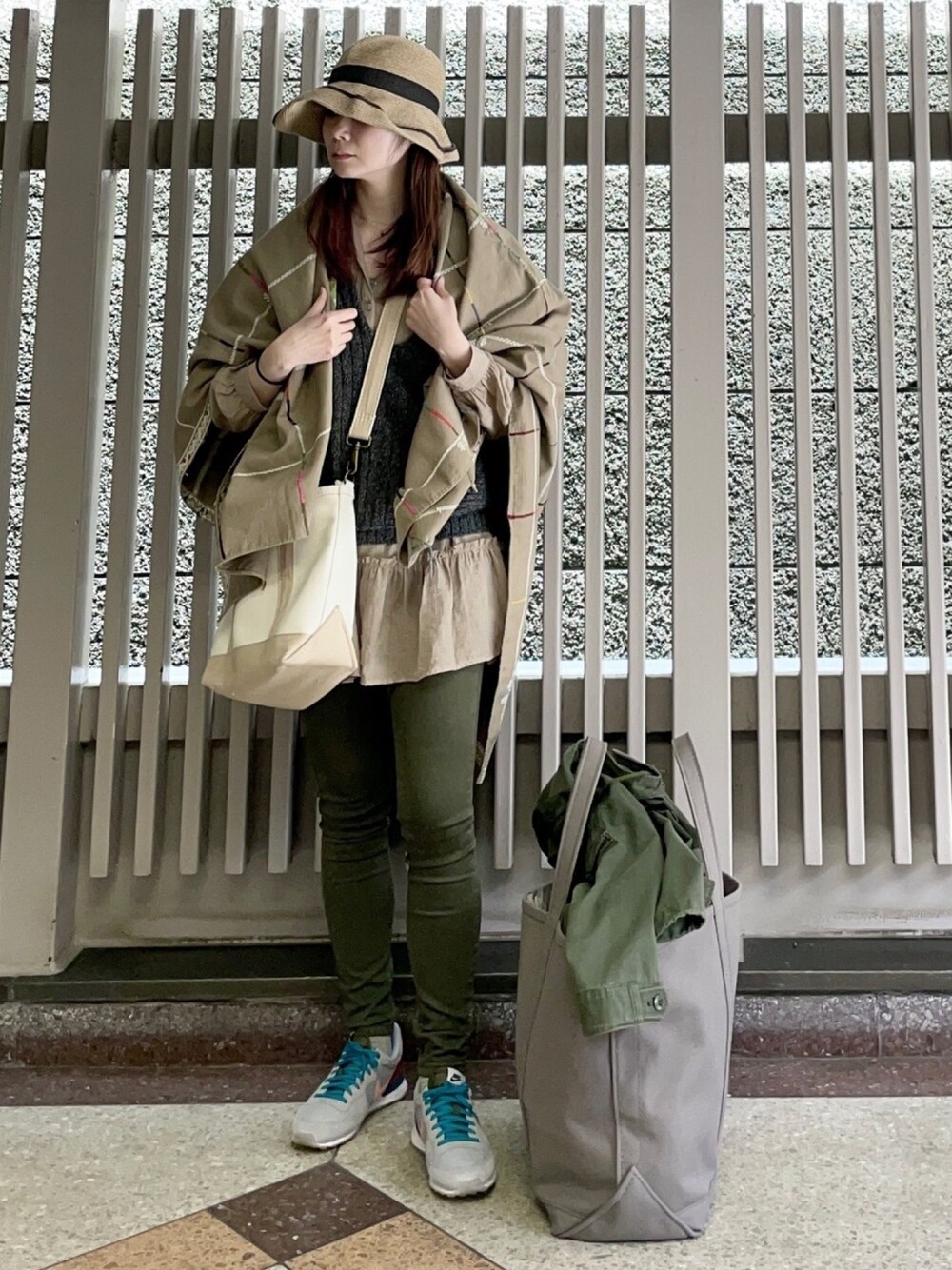 一点もののメキシコのテーブルクロスをストールに。 結構、テーブルクロスをストール使いにする事多いです。笑