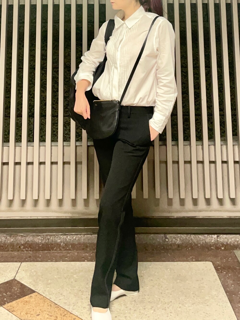 スラックスにバレエシューズは最近のお気に入りコーデ