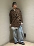 ブラウンのチェックジャケットの上からループベストを羽織り、秋らしさ満載のカラーリングかつ見かけがキャッチーなコーディネートにしてみました🍂 デニムはあえて38の1番大きいサイズでルーズに👖 身長156cmで足元のたまり具合はこのぐらい。参考になれば嬉しいです! ぜひ店頭でもお手に取ってみてください!