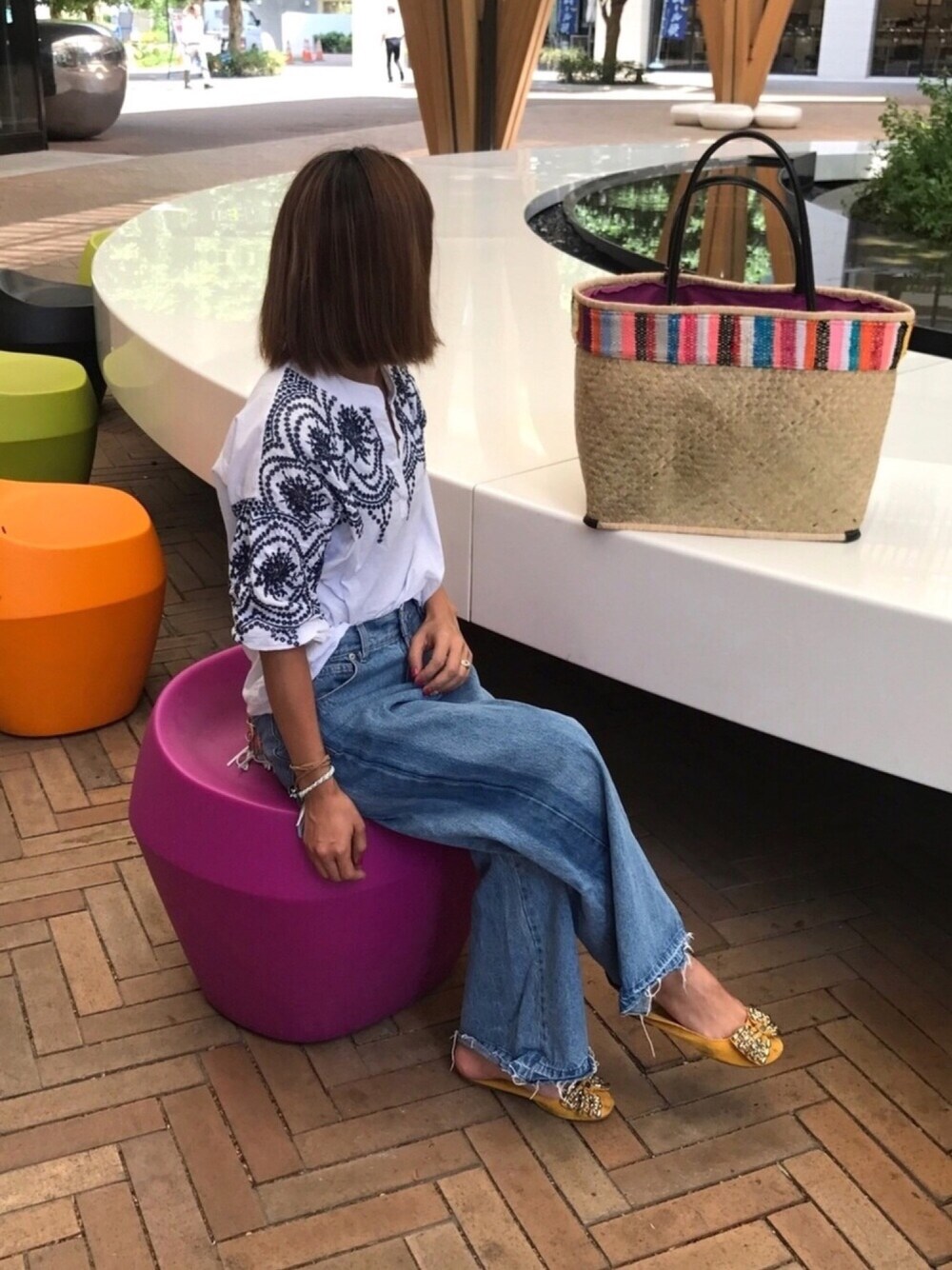 パンチング刺繍のブラウスに、 ワイドデニム合わせて、 差し色にイエローのシューズ❤️ ハワイで購入した、デカカゴバッグはプールや海に行く時に大活躍しそう😍 ご覧くださりありがとうございます❤️ ◆Instagram◆ COPINE 👉 @copine_ayaiku 私 👉 @ayayayark マイペースですがよろしくお願いします😋