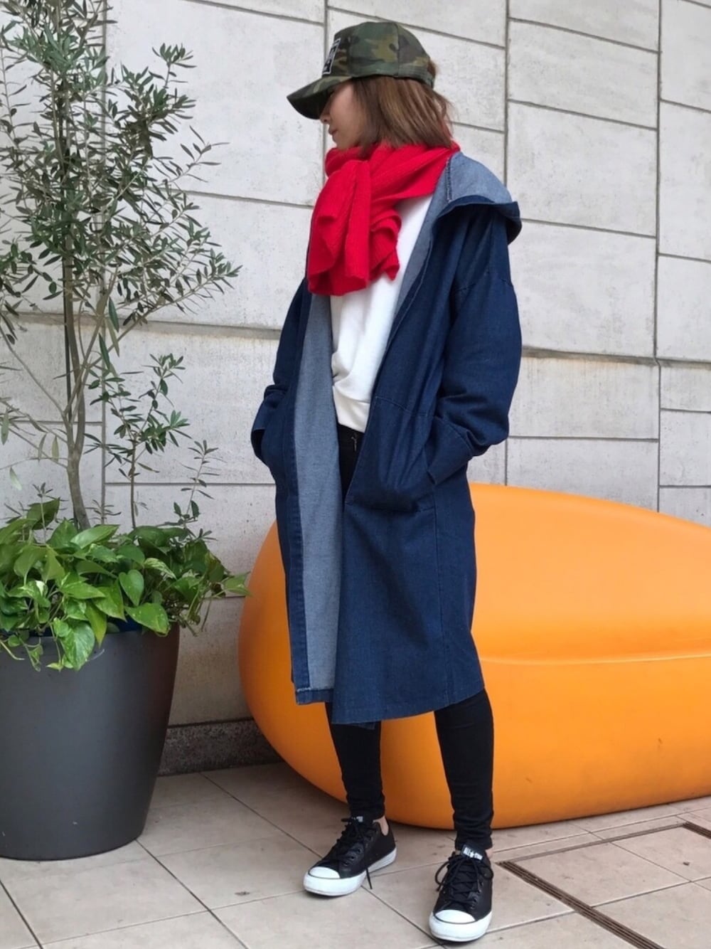 ayaのデニムジャケット「★再入荷★フード付コットン長袖ゆったりドルマンデニムコート」を使ったコーディネート