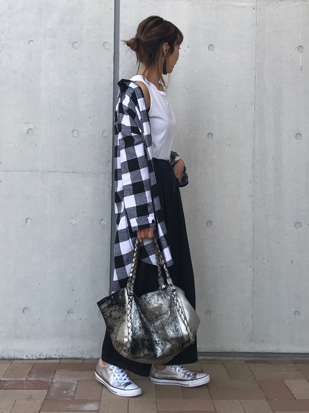 今日は暑いくらいあったかい☀️ ギンガムチェックのロングシャツに、 ワイドパンツでゆるコーデ❤️ 小物は、シルバーで☺️ ご覧くださりありがとうございます😊 ◆Instagram◆ COPINE👉 @copine_ayaiku 私👉 @ayayayark