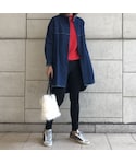 ayaのデニムジャケット「ヴィンテージ加工ノーカラーカットオフロングデニムコート(2color)」を使ったコーディネート