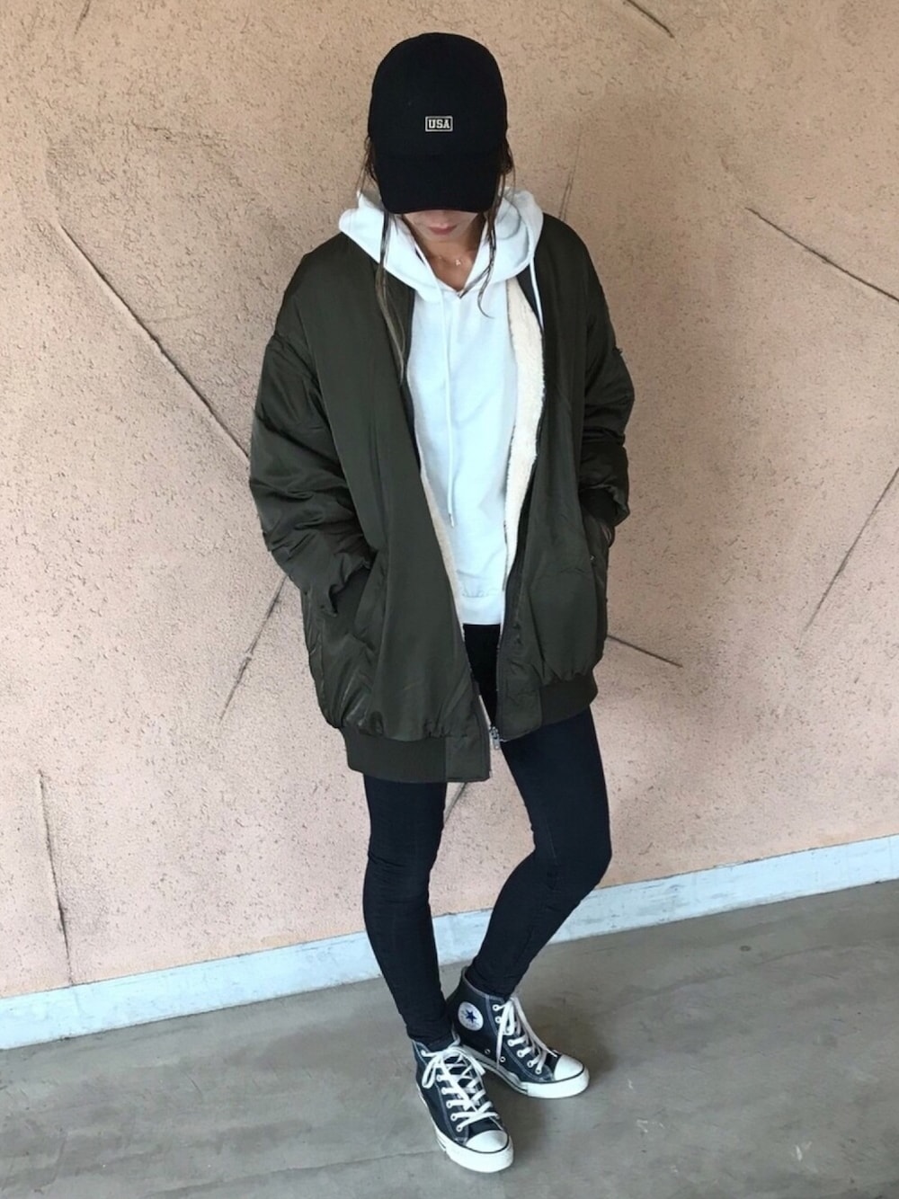 ayaのブルゾン「ビッグシルエット!リバーシブルボア・MA1ブルゾン(3color)」を使ったコーディネート