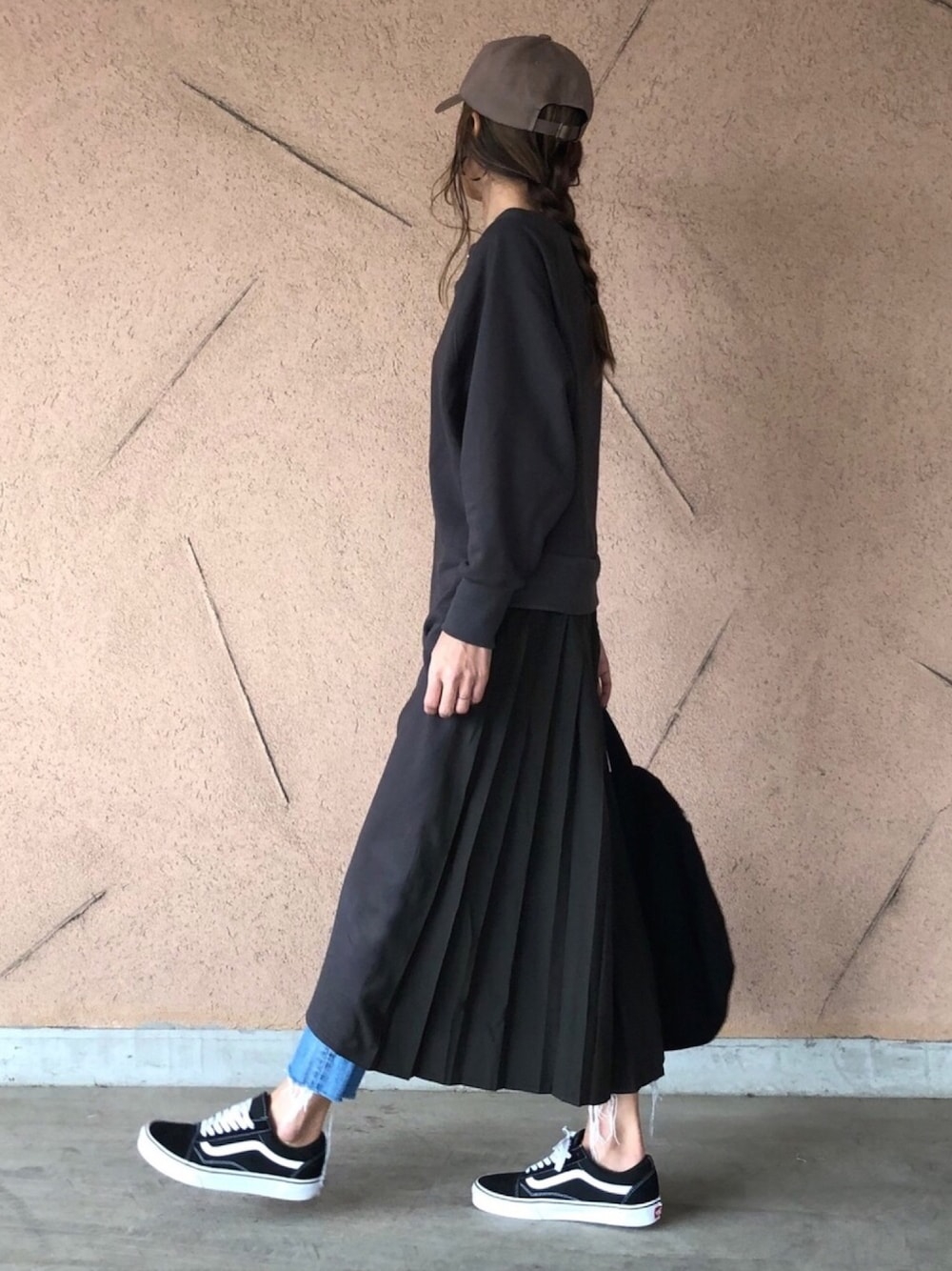 バックプリーツが可愛いスウェットワンピ♡ ワンピ×デニム。 カジュアルレイヤードスタイル♡ ◆Instagram◆ COPINE→@copine_ayaiku 私→@ayayayark