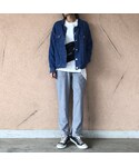 ayaのデニムジャケット「再・再入荷!デニムシャツ感!!6.5オンスGジャン/ライトアウター【クリックポスト対象商品】」を使ったコーディネート