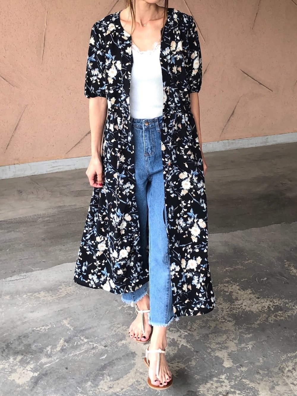 花柄ワンピにデニムを合わせて♡ シンプルカジュアル♡ ◆Instagram◆ COPINE→@copine_ayaiku 私→@ayayayark