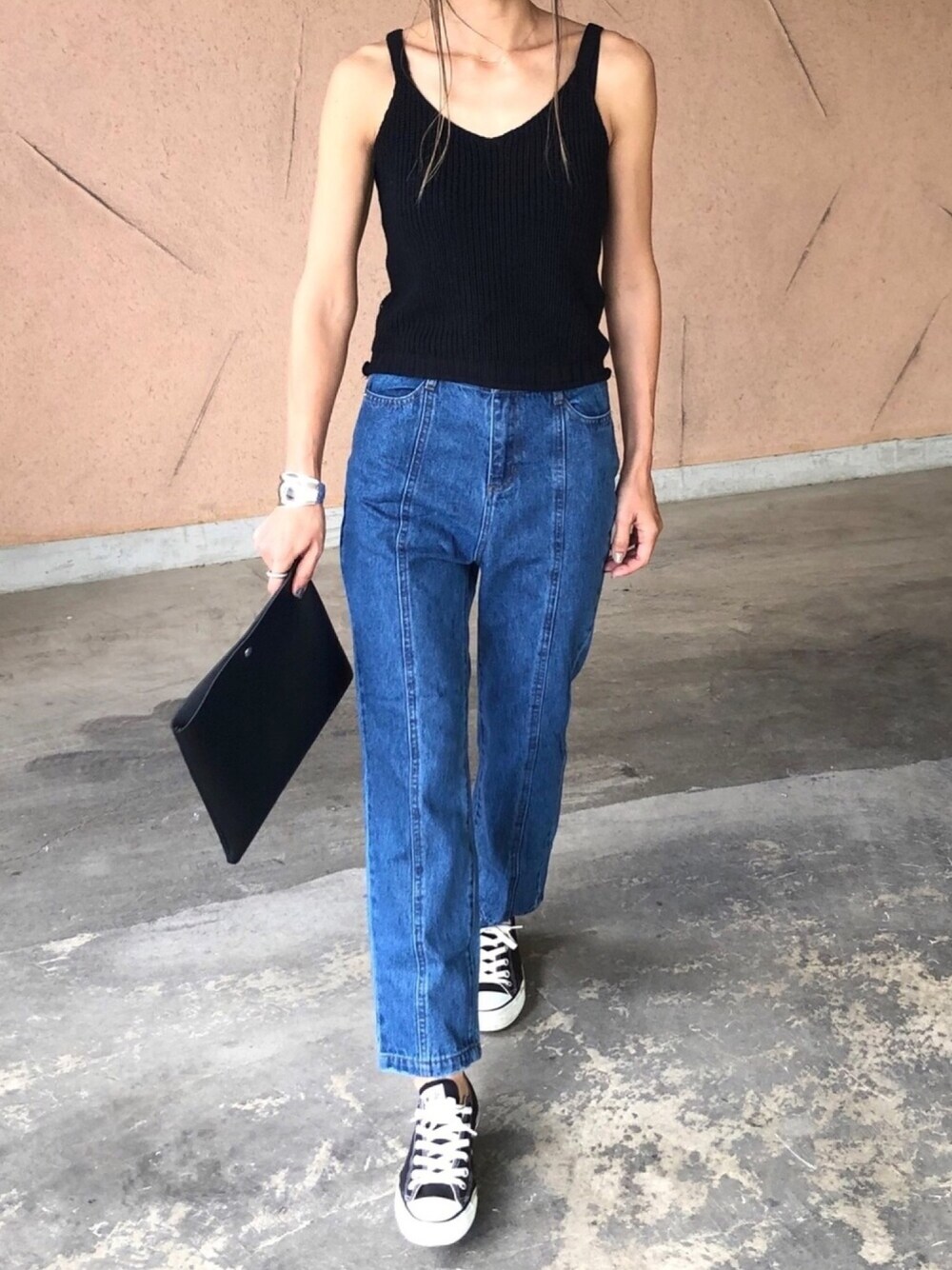 毎日、毎日暑すぎる。 ニットキャミ×デニム。 シンプルモノトーンコーデ♡ ◆Instagram◆ COPINE→@copine_ayaiku 私→@ayayayark