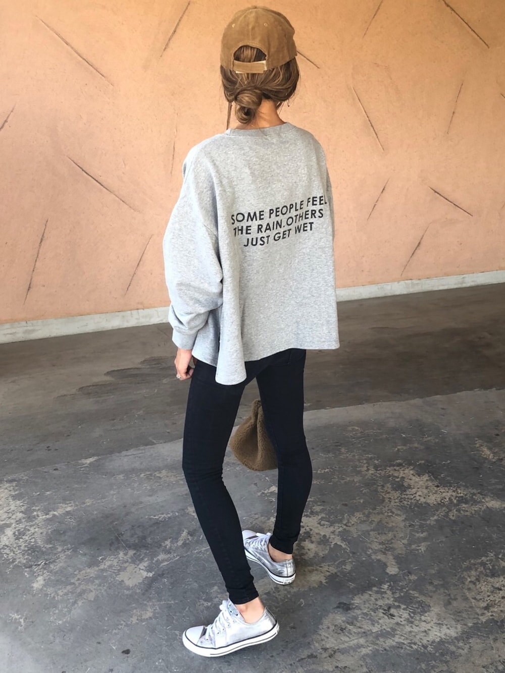 サイドジッパーデザインのゆるスウェット♡ バックロゴがポイント♡ シンプルにカジュアル。