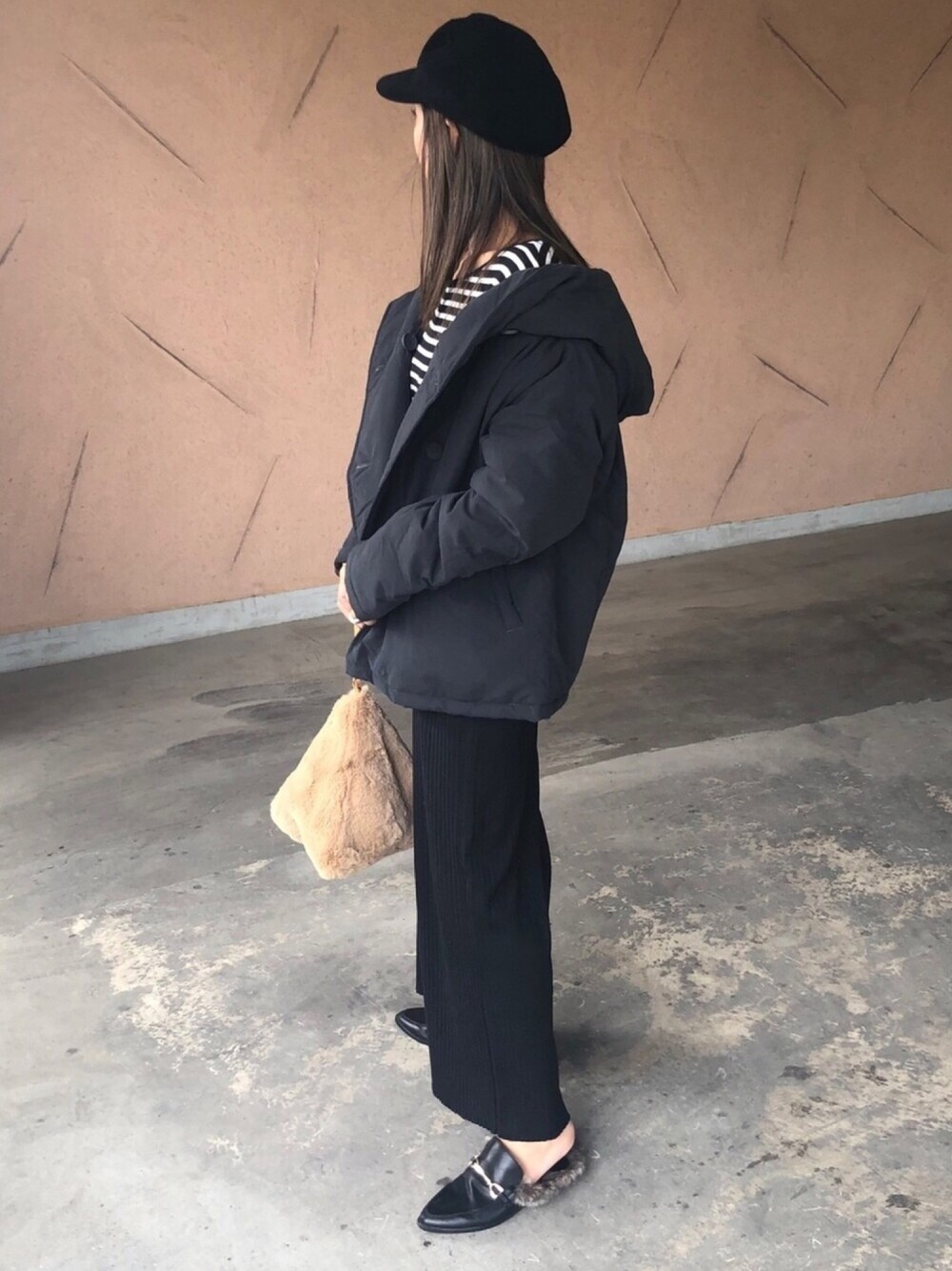ayaのダウンジャケット/コート「1月7日再々入荷!軽量で暖かくマットな質感!フード中綿ショート丈コート」を使ったコーディネート