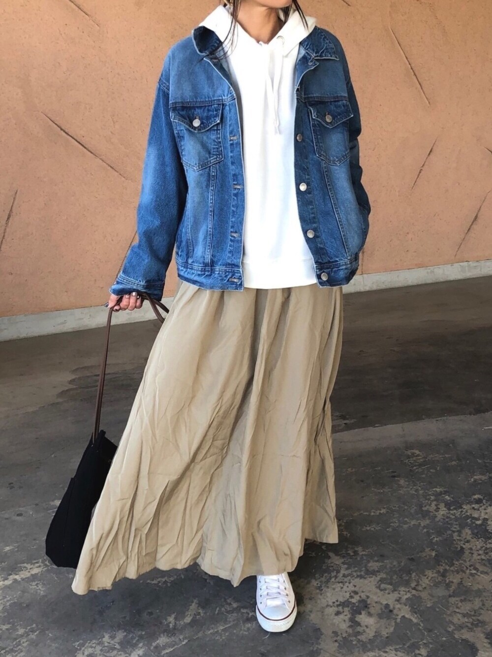 パーカー×ロングスカート ♡ gジャン羽織って、カジュアルに♡ ◆Instagram◆ COPINE→@copine_ayaiku 私→@ayayayark