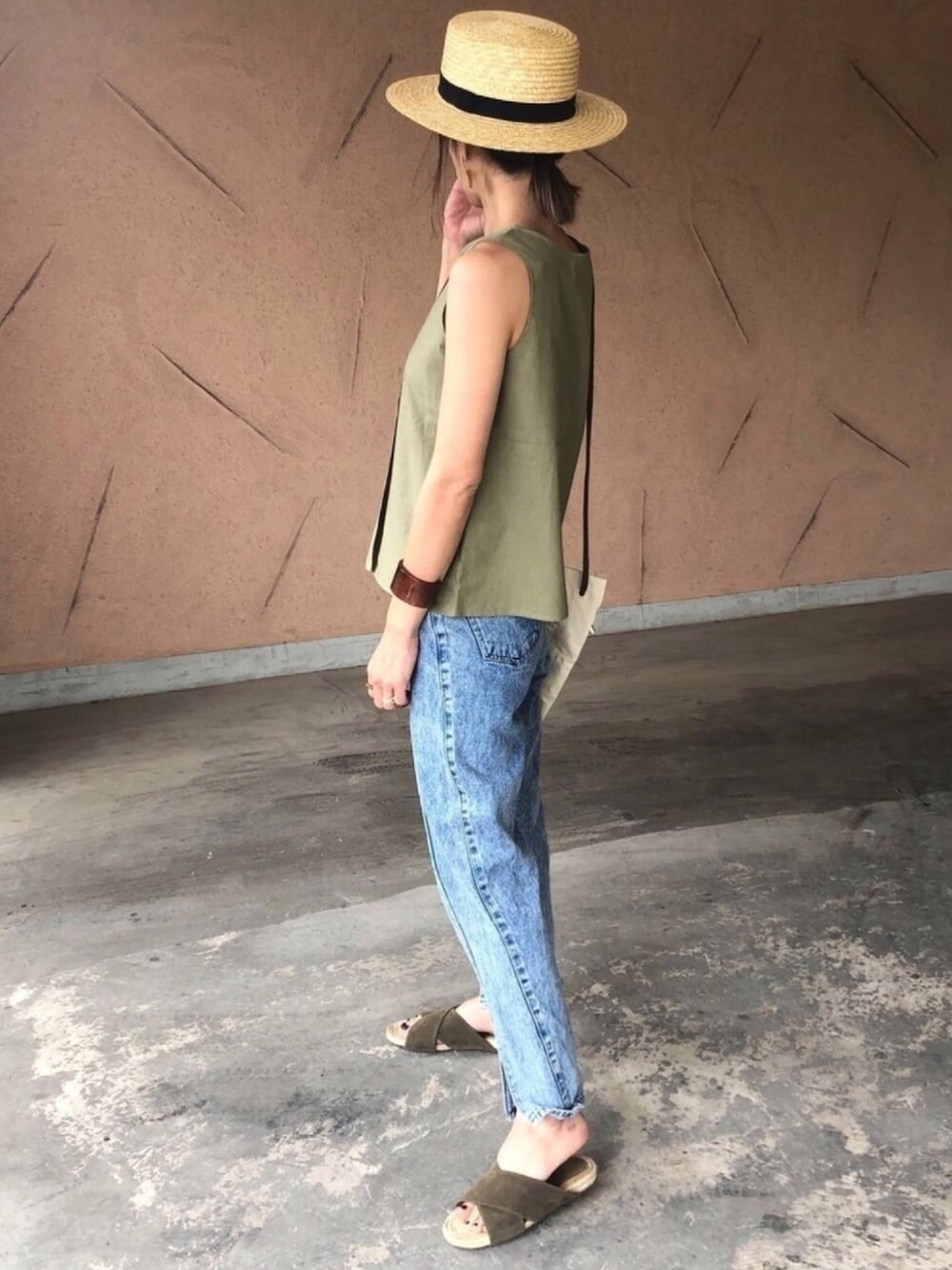 ayaのTシャツ/カットソー「【2021年夏だす】リネンライク!ラップデザインノースリーブ(2color)【クリックポスト対象商品】」を使ったコーディネート