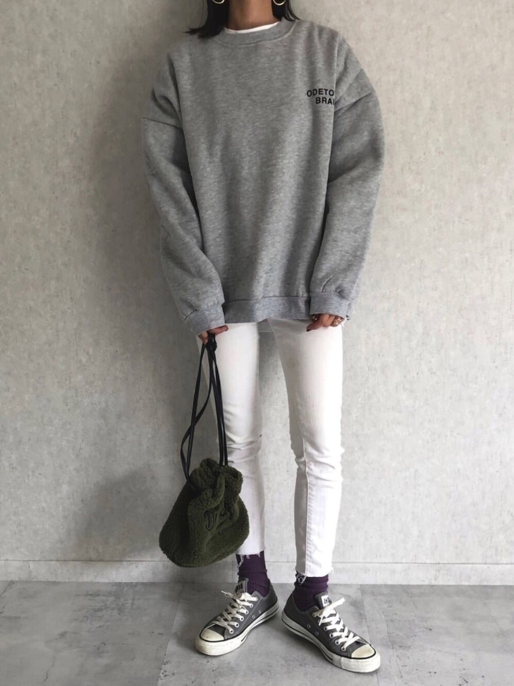裏起毛であったかいビッグシルエットの トレーナー😊 シンプルにホワイトデニムと。 靴下でちょっとカラーをプラス♡ ◾️Instagram COPINE→@copine_ayaiku 私→@ayayayark
