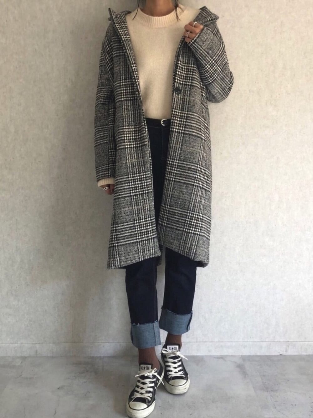 ayaのチェスターコート「【近日再入荷決定!】バックスリットデザイン!グレンチェック柄チェスターコート」を使ったコーディネート