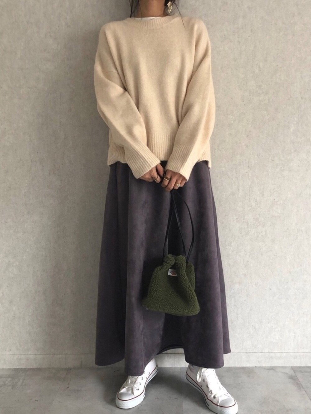 ホワイト×パープル。 マットな質感のスエードスカート 。 くすみカラーだから大人っぽい♡ ◾️Instagram COPINE→@copine_ayaiku 私→@ayayayark