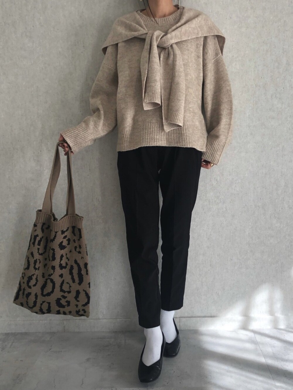 肩掛けニットは、取り外し可能😊 スーパーストレッチのタックパンツは、 ストレスフリー♡ きれいめカジュアル♡ ◾️Instagram COPINE→@copine_ayaiku 私→@ayayayark