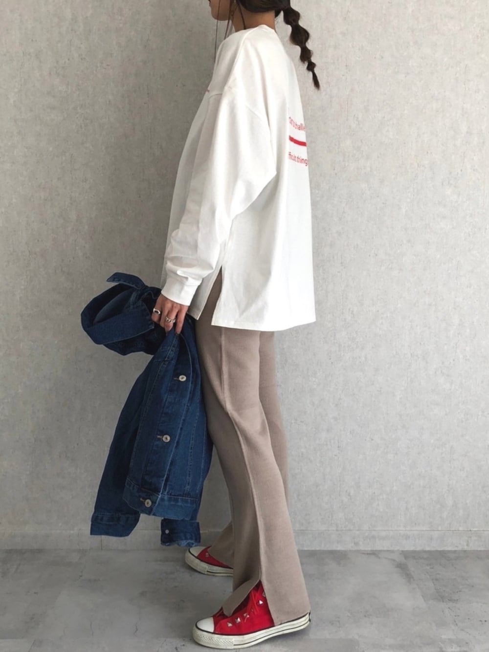 バックロゴの赤が可愛い、ゆるっとロンt。 シンプル楽ちんカジュアル♡ ◾️Instagram COPINE→@copine_ayaiku 私→@ayayayark