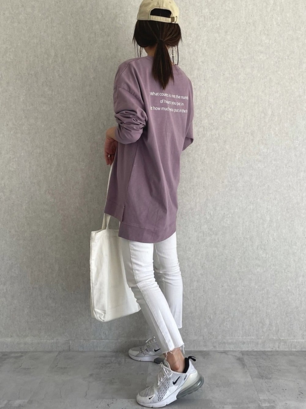 パープルの色合いが可愛い バックロゴロンT。 シンプルにホワイトパンツと合わせて♡ ◾️Instagram COPINE→@copine_ayaiku 私→@ayayayark