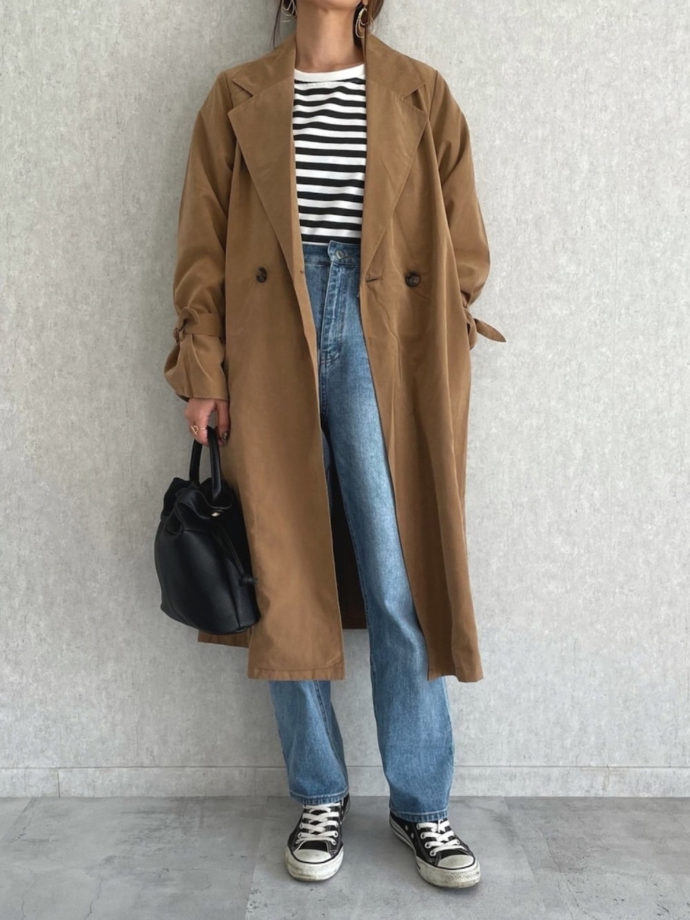 キャンディスリーブが可愛い。 オーバーサイズなトレンチ♡ スウェット×デニムでカジュアルに♡ ◾️Instagram COPINE→@copine_ayaiku 私→@ayayayark