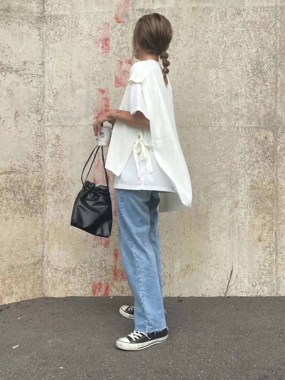 ゆるっとtシャツに、 オーバーサイズのサイドリボンニットベストをレイヤード♡ ニットベストは今から着れる秋物😊 楽ちんゆるカジュアル♡ ◾️Instagram COPINE→@copine_ayaiku 私→@ayayayark