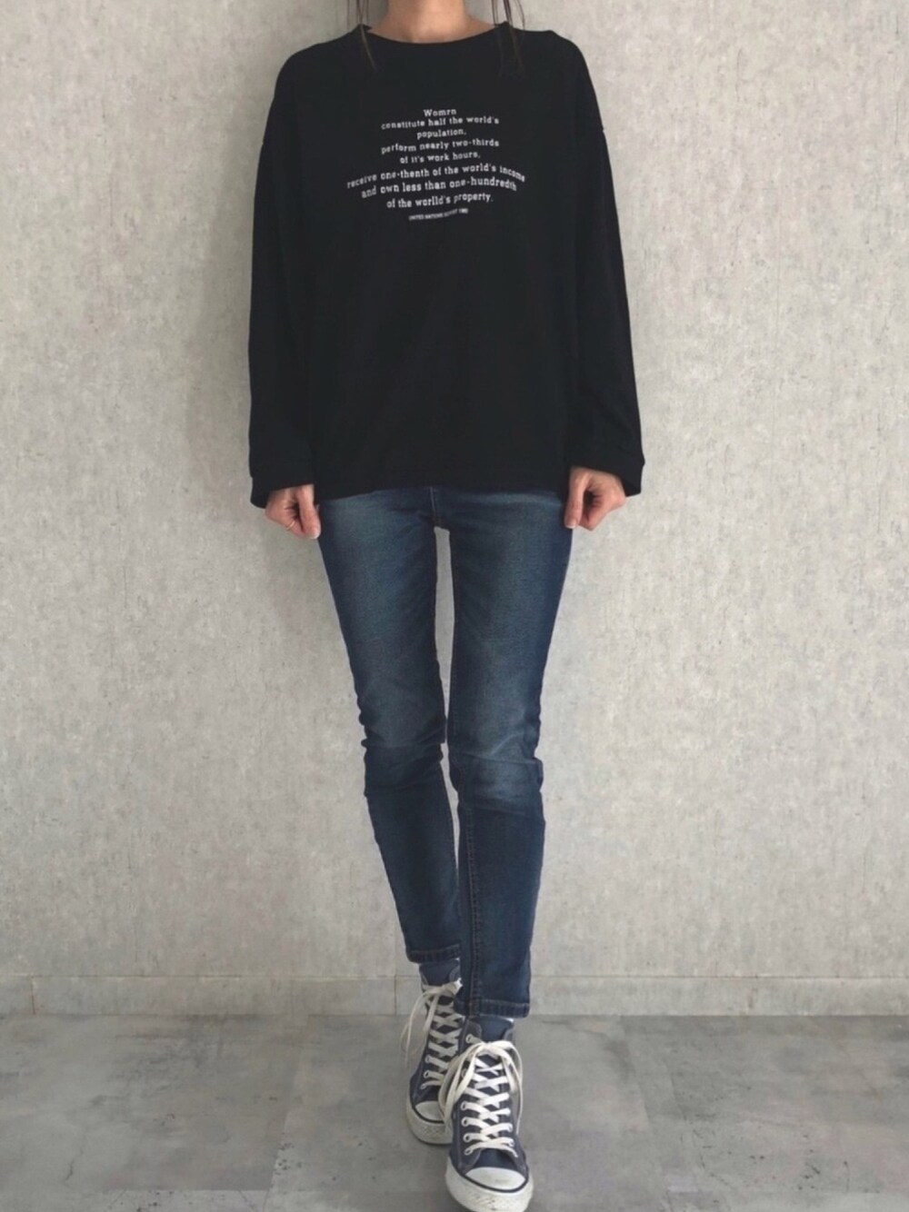 程よいゆるっと感のロンTに、 ストレッチが効いた楽な履き心地デニム。 シンプルカジュアルコーデ😊 ◾️Instagram COPINE→@copine_ayaiku 私→@ayayayark