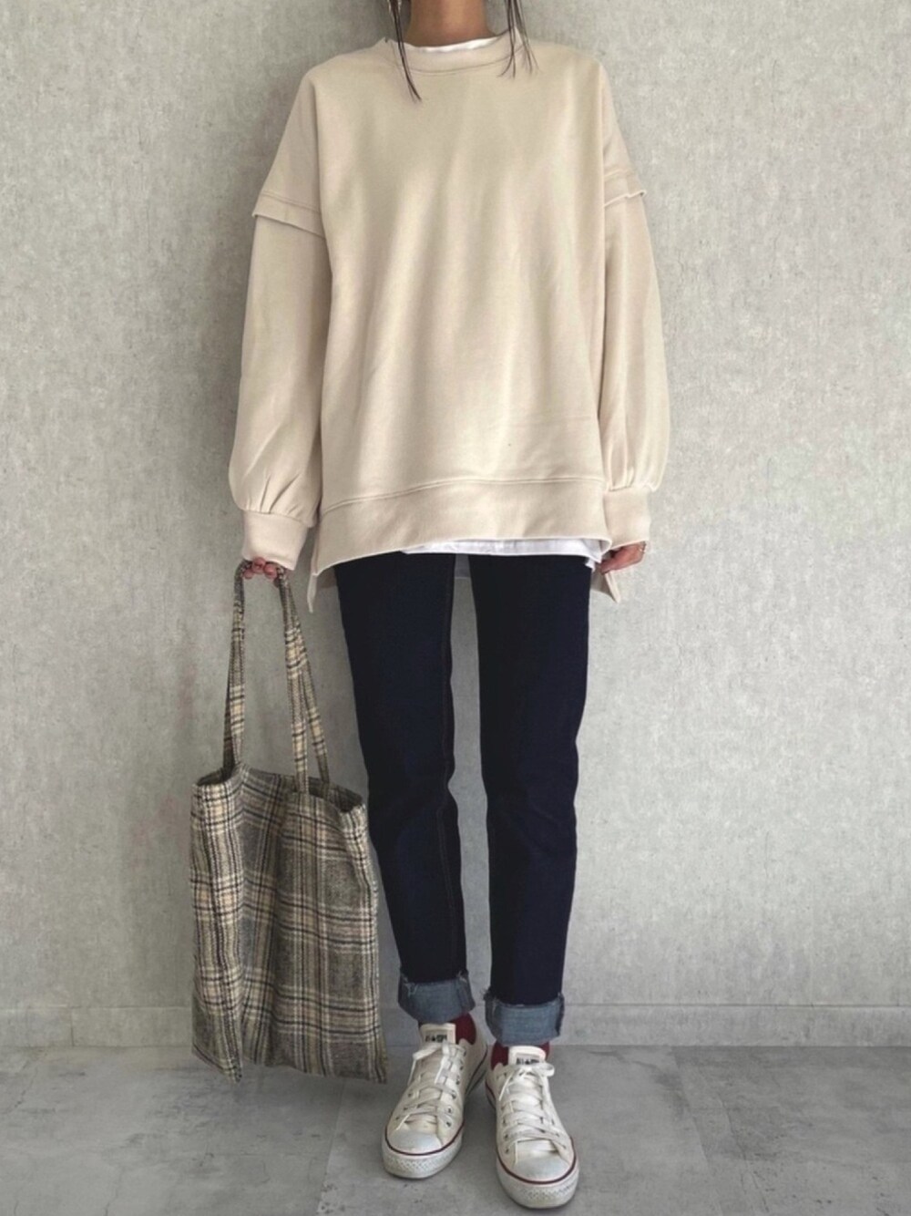 ayaのスウェット「ビッグシルエット袖切り替えスウェット」を使ったコーディネート