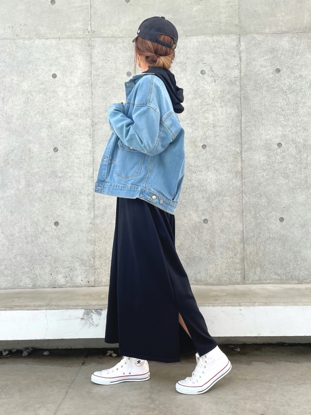 ayaのデニムジャケット「【2021ss】バックタックデザイン!ビッグシルエットGジャン (2color)」を使ったコーディネート
