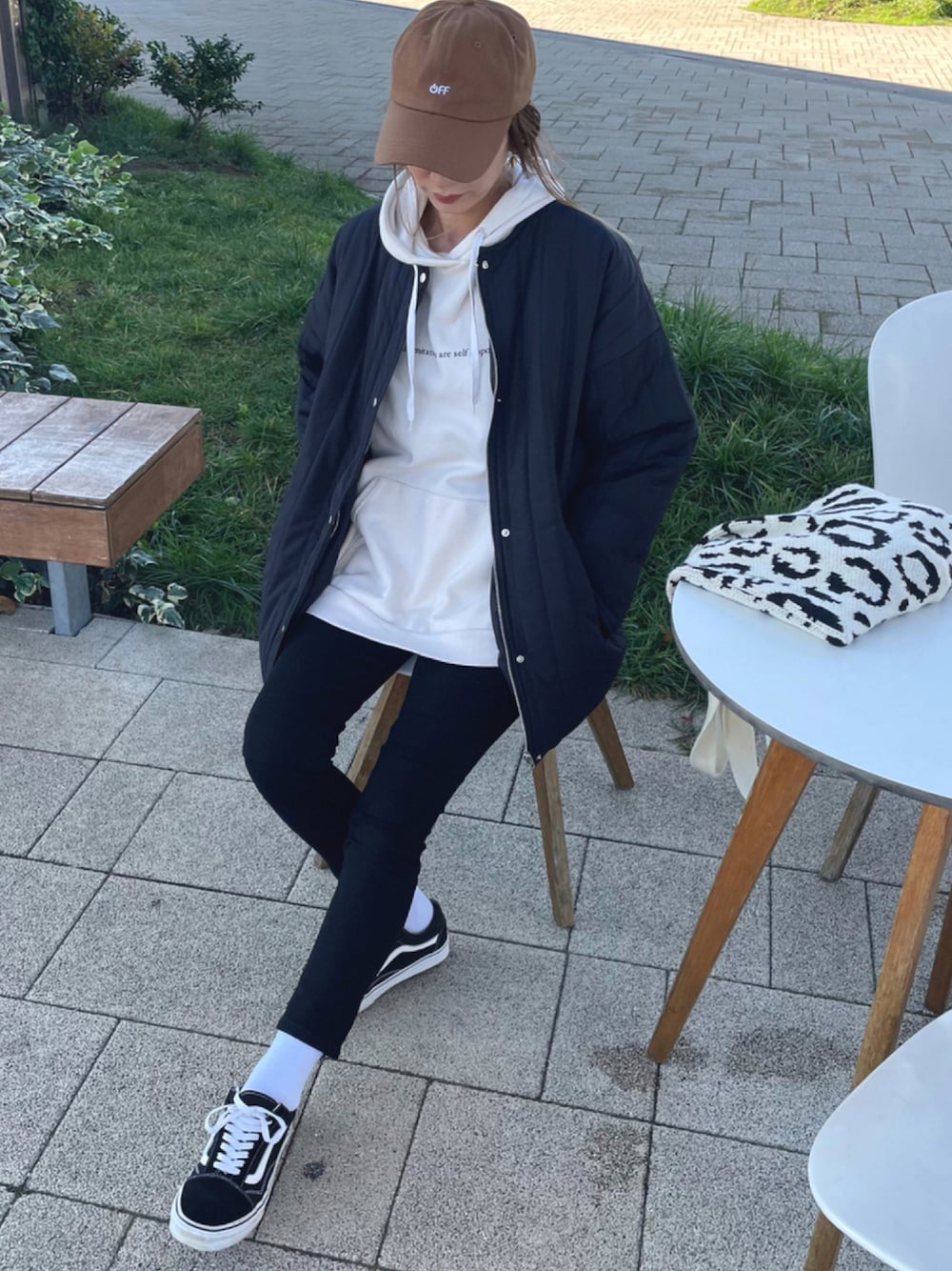 縦キルティングのコート。 ノーカラーだから パーカーと合わせても可愛い😊 レオパードニットバッグをアクセントに、 シンプルカジュアルコーデ♡ ◾️Instagram COPINE→@copine_ayaiku 私→@ayayayark