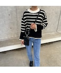 ボーダーニット×デニムパンツ。 ゆったりオーバーサイズなボアコートは、 フロント部分がコーデュロイ切替デザイン♡ 合わせやすい丈感で使いやすい😊 ◾️Instagram COPINE→@copine_ayaiku 私→@ayayayayark