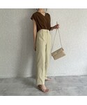 カップ付きタンクに、 リネンライクなタック入りパンツ♡ ボリューム袖の シアーロングシャツを羽織って😆 シンプルカジュアルスタイル♡ ◾️Instagram COPINE→@copine_ayaiku 私→@ayayayark
