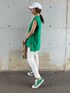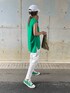 ayaのTシャツ/カットソー「コットンバックロングデザインノースリーブ(グリーン)」を使ったコーディネート