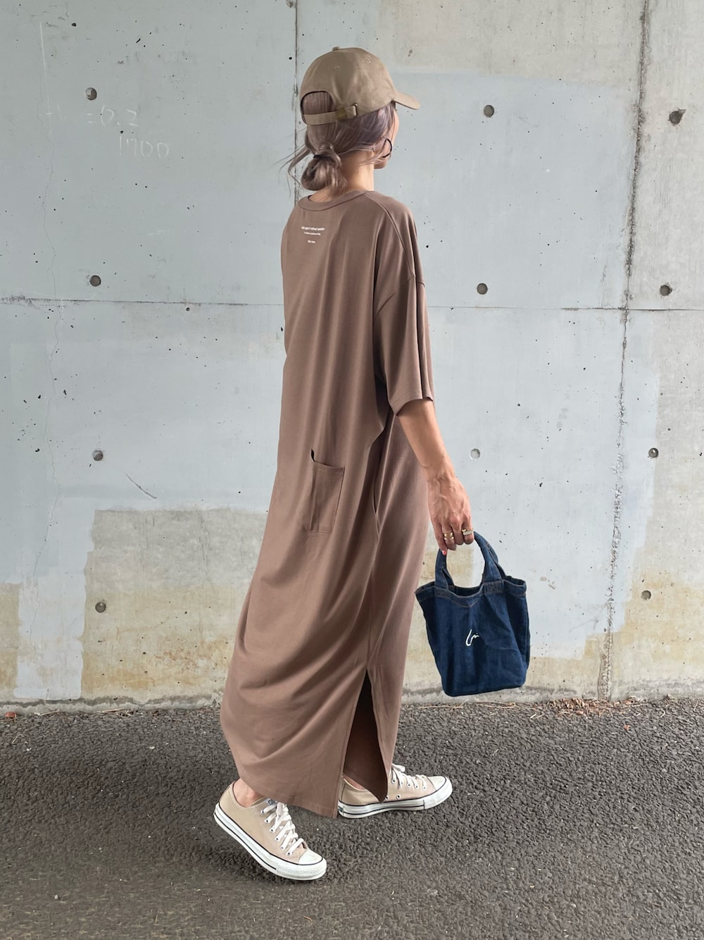 ayaのワンピース「胸ポケットロゴ&バックロゴゆったりTシャツワンピース(ブラック)」を使ったコーディネート
