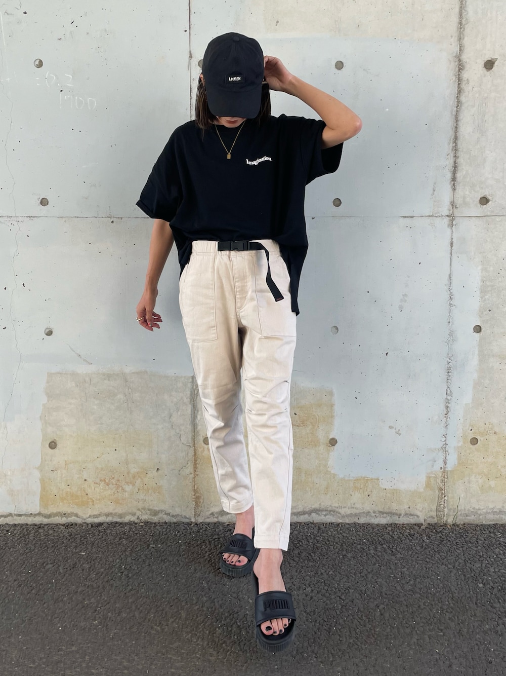 モノトーンシンプルカジュアル✨ tシャツはフロントはシンプルロゴ、 バックは大きめロゴで、後ろ姿も可愛い😌 パンツはストレッチが効いていて、楽な履き心地♡ ◾️Instagram COPINE→@copine_ayaiku 私→@ayayayark