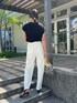 着回しがきく、 フレンチスリーブのニットソー😌 ダメージデニムパンツと合わせて✨ シンプルモノトーンコーデ♡ 柄バッグがポイント🫶 ◾️Instagram COPINE→@copine_ayaiku 私→@ayayayark