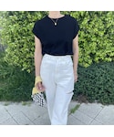 ayaのTシャツ/カットソー「フレンチスリーブニットソー (ブラック)」を使ったコーディネート