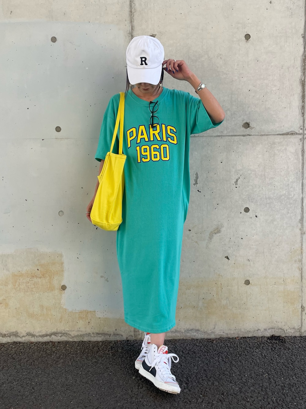 ayaのワンピース「PARISサイドスリットTシャツワンピース(ミント)」を使ったコーディネート