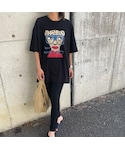 ayaのTシャツ/カットソー「おしゃれアニマルプリントtシャツ(ブラック)」を使ったコーディネート