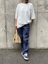 ayaのTシャツ/カットソー「シンプルロゴビッグシルエットTシャツ(ライトグレー)」を使ったコーディネート