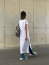 tシャツワンピースに、 プリーツカラーパンツをレイヤード😊 プリーツパンツはセルフカットできる✨ ▪️Instagram COPINE→@copine_ayaiku 私→@ayayayark